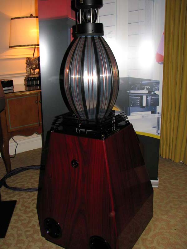 It was a blast visiting all of the exhibitors, especially a particular one whom was proudly playing the - um "music" of Grace Jones (gasp), on a Star Trek Nomad speaker system that sounded like a good channel on AM radio. I never thought Peter Gabriel's voice could sound so screechy and fatiguing until I listed to "In Your Eyes" on the speaker pictured here from MBL Audio.
