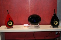 We couldn't help but stop as we passed the Scandyna booth. Podspeakers by Scandyna has a speaker appropriately named The Drop. They come in multiple colors and are now offered with a round subwoofer named, what else, the ball. An interesting design for sure. Features of The Drop include: