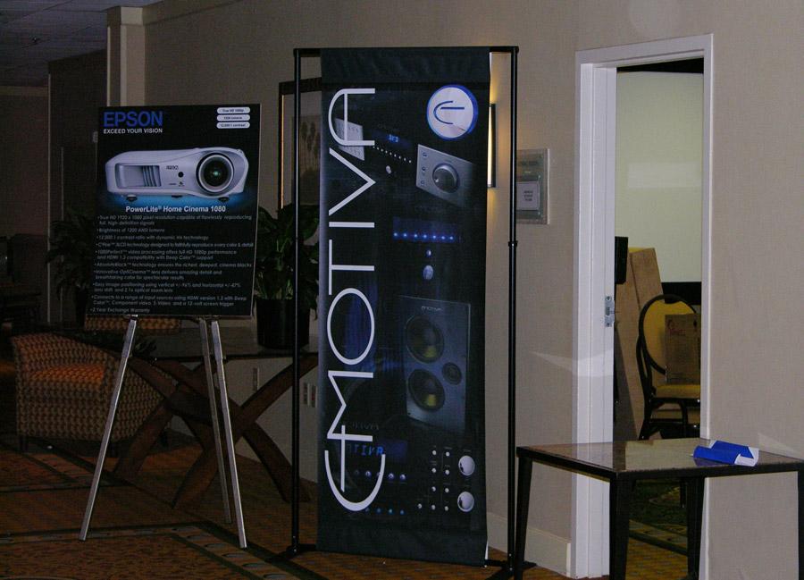 It was already mid-afternoon and nobody’s demo rooms were fully set up. We were still, however, determined to shoot all of the video interviews that day as we knew there wouldn’t be any time on the main event day (Saturday) to shoot them. Dolby/AIX were the first to officially make noise at our event. Their room was belting out tunes while others were still finagling with their projectors. The others quickly caught up and by appetizer/registration time, everyone pretty much had their demo rooms setup. Ironically the Emotiva crowd seemed to fly through their setup as I popped my head in only hours after I initially found them missing in action (MIA), to find their complete setup was configured and ready to go. Impressive! Needless to say, we shot all of our exhibitor video interviews by 11pm Friday night and we were ready to partake in the show activities the following day with one of our many worries scratched off the list.