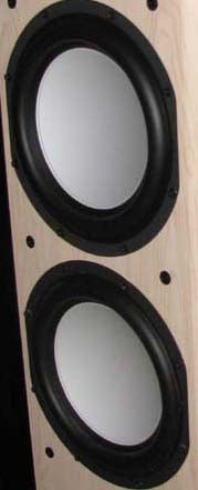 ½” aluminum woofer and ½” titanium tweeter. The speakers are so small (2.3 x 6. x 6.5 d x w x h)) that they practically disappear