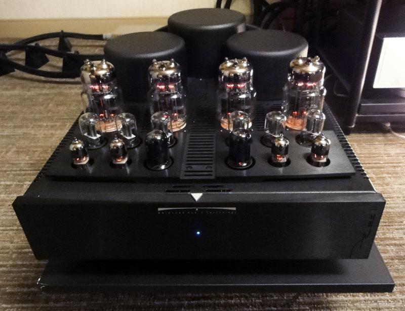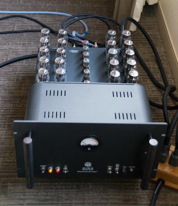 The newly improved Atma-Sphere MA-2 mk3-2 monoblock amplifier is an intimidating piece of audio hardware with a price to match at $20,800. This is OTL amplifier, which means it does not use an output transformer, which has the advantage of reduced distortion, as transformers are a major source of distortion. It uses 26 tubes and can output 220 watts at 4, 8, or 16 ohms before clipping. The pair I heard drove some huge electrostatic speakers which filled a large room with ease. Its power consumption versus power output exhibits the typical lower efficiency of class A amplifiers, but the sound itself is first class. If you want to enjoy high quality music playback whilst saving money on heating bills, the MA-2 is a great choice.