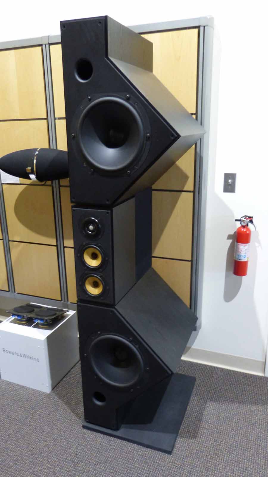 B&W 800 Matrix Stackable Tower (left pic) ; Vintage Saxaphone looking B&W Speaker (right pic)