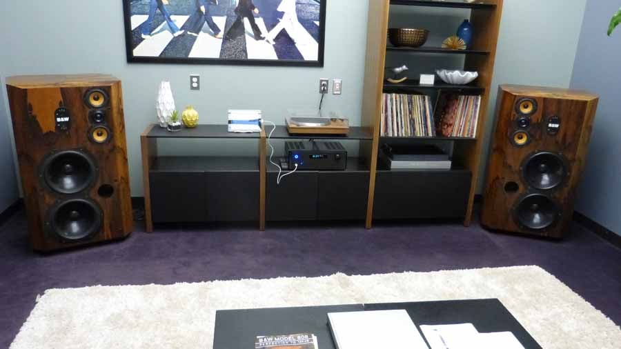 For years I've read about the B&W Nautilus speakers and always wondered how they'd sound. Although they are roughly 20 years old, they are still a timeless design kinda like the original Acura NSX. By today's standard, they may not be up to snuff, but their performance at the time was so revolutionary and the design so intriguing, that they aged well and still command respect. The folks at B&W did warn us that the new 800 D3 comfortably outperform the $60k/pair Nautilus speakers, but I wanted to hear them nonetheless. The demo started off with an instrumental piece followed by a vocal track all streamed to a Classe CP-800 Stereo Preamp/Processor. The sound was very detailed and lush and bass was warm and pleasant. I felt the overall sound was on the bright side but not fatiguing. I sat in the money seat for a spell to get a feel for how they imaged and they didn't disappoint.