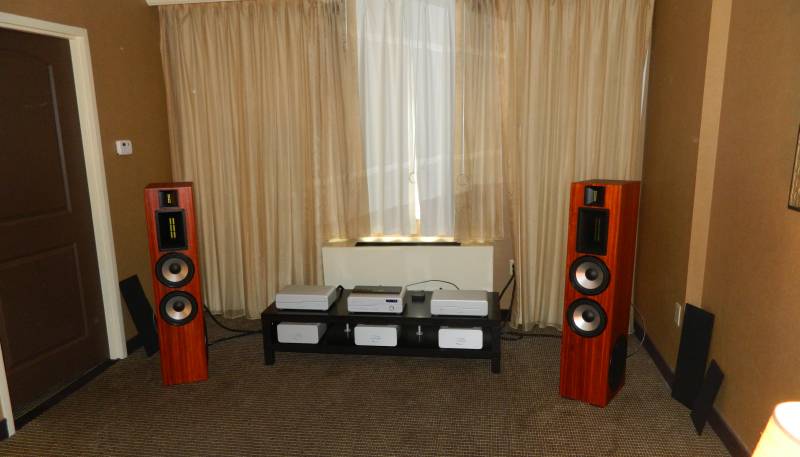 The Legacy room was on the first floor of the hotel, and as a result, the Aeris was the first speaker I heard of the show, and one of the last. While Legacy had several other speakers on hand, including the Whisper XD and Focus HD, all three times I swung by their room, the Aeris’ were playing, powered by Coda amplification fed by a simple Oppo Blu-Ray player. Priced at $15,900, these aren’t exactly inexpensive speakers, and my expectations were very high. Fortunately, I was not disappointed. Just looking at the Aeris, you expect big sound with a robust low end, and that much held true without a doubt. Even played to spirited levels in a fairly large conference room, the Legacies were just loafing along.