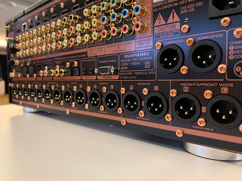 A view of the flagshilp 13.2 channel Marantz AV8805 pre-pro with 15.2 switchable balanced and unbalanced outputs.