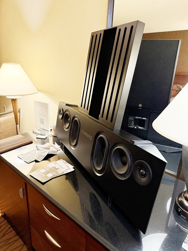 On “Where Is Love Now” by Nickel Creek, I really couldn’t believe what I was hearing. There was zero sense of the sound being tied to the Canvas itself. Instead, the whole room was filled with a wall-to-wall stereo image. Bass was deeper than expected, and the overall tonal balance was pleasing, if perhaps slightly bright. Canvas’s CSO Jannick Tronsen answered my flood of questions as I tried to wrap my head around the remarkable demo experience. For customers who are willing and able to spend upwards of $5K but who want a solution with zero footprint and nearly zero installation hassle, the Canvas is a game-changer. I hope we can get one in for review.