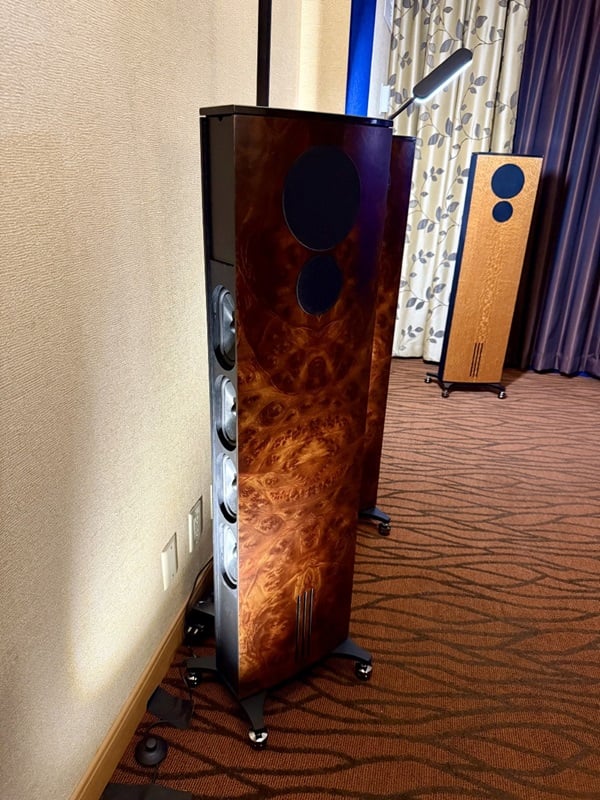 I got to see and hear a variety of exciting audio gear during my weekend at T.H.E. Show SoCal 2025. According to Emiko E. Carlin, CEO of T.H.E. Enterprises and President of T.H.E. Show, there were over 225 brands exhibiting at T.H.E. Show SoCal this year, making it bigger than it was in 2019, and officially marking the end of COVID-induced audio show shrinkage, once and for all. The vibe at the show was convivial and optimistic. If there is a downside to this friendly atmosphere, it is that there were often loud conversations taking place in the listening rooms. There were, therefore, some promising rooms that I simply wasn’t able to report on, even though I did my best to return to said rooms for a second chance at listening. With such a big turnout of exhibitors, there was simply too much for one person to cover, so inevitably there were rooms I missed. I had hoped to spend time in the headphone section, and to attend some of the seminars, but I quickly realized that neither would be possible. Nevertheless, I heard some some great music on some spectacular systems, and learned about new products from brands both familiar and new to me. It’s important to point out that an audition at an audio show is not a review. With so many moving parts, there’s no way to determine the sound quality of any given loudspeaker or component from a short listen in a hotel room with poor room acoustics and a jumble of unfamiliar recordings played back on systems comprising multiple pieces of unfamiliar gear. In the past, I have even heard objectively excellent systems sound dreadful during shows, and we learn nothing from dwelling on such instances. When exhibitors manage to overcome these challenges, it’s something worth celebrating. All of the systems I will report on here are ones that I enjoyed for one reason or another. With all that said, let’s dive in.