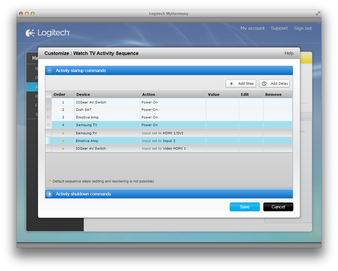 With the Harmony Ultimate, I'm back to pressing a single button to activate everything I need. And it's soooo nice. But let me back up, because it only took me about an hour to configure everything just the way I wanted it. I could have been up and running in far less time, but I'm pretty particular about how I want my theater room to respond to commands.