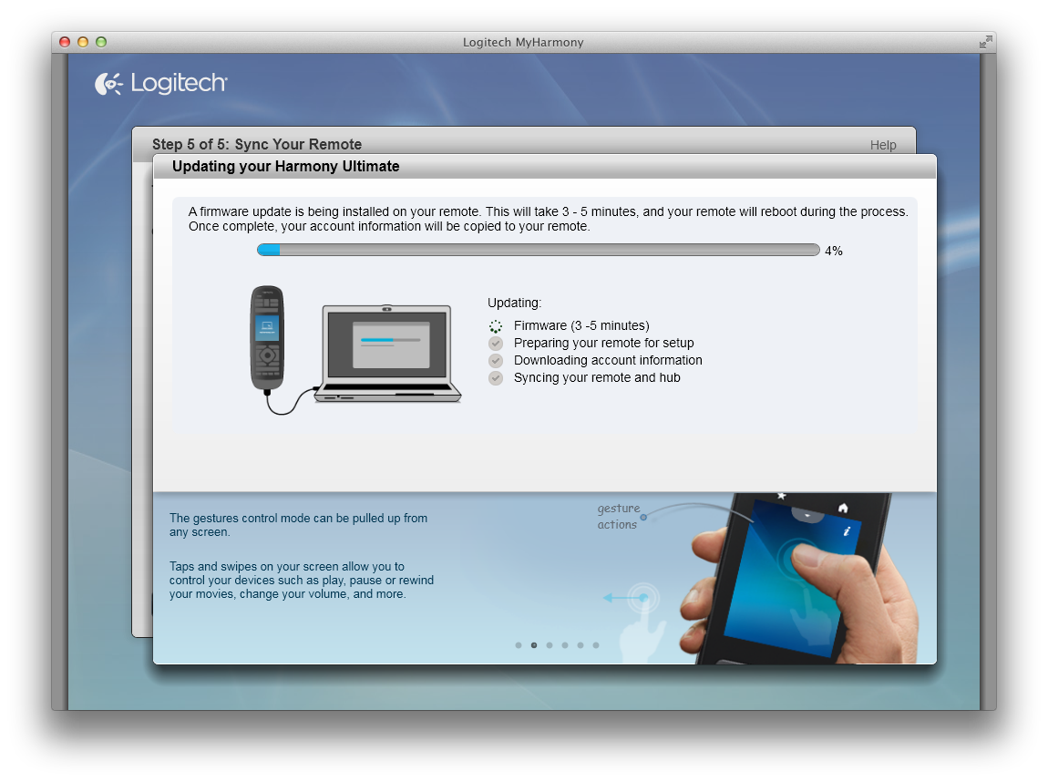 The many setup screens of the Logitech Harmony Ultimate Remote