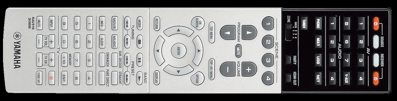 This are actual physical buttons that you can find often without looking directly at the remote. In other words, 99% of current remotes. However, there’s still a right and wrong way to do this. For instance, Yamaha make great receivers, but the remote they shipped with their RX-A2040 AV Receiver features lots of small, similarly sized buttons that are easily confused and require reading tiny text to discern the difference. Multiple, small, flat buttons is the “wrong way”.