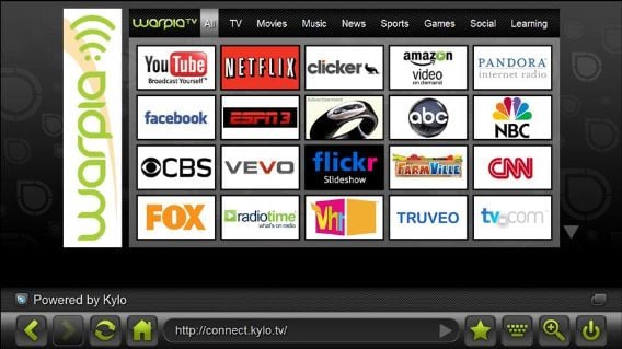 The new WarpiaTV Browser powered by Kylo simplifies PC and internet viewing on your television with a customized icon based browsing guide to the most watched internet sites like Pandora, Netflix, Amazon, YouTube and more. The included Wireless Motion Controller provides the ability to control the PC Mouse and seven PC functions including, volume, mute and escape. With Hillcrest Labs Freespace technology, the user doesn’t need to point the controller at the screen for basic control functions such as volume, mute and escape, but instead allows the user to hold the Wireless Motion Controller in the position that is the most comfortable for him/her. For web browsing and cursor placement, you simply point the Controller at the TV and the curser moves where you want it. If you've ever used a Gyros product, you'll be familiar with this type of on-screen navigation.